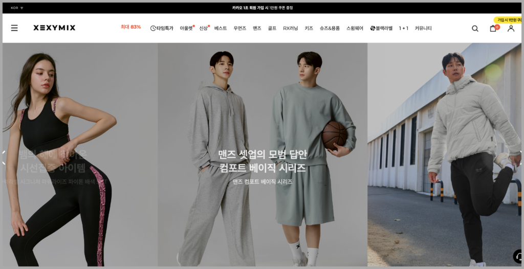 | 가입 및 할인 혜택 | -회원 가입 시 1만 원 쿠폰 지급 -회원 등급별 혜택(할인 쿠폰, 적립, 생일 쿠폰 등) -타임 특가, 아울렛, 신상 할인 카테고리 운영 -최대 83% 할인 |
